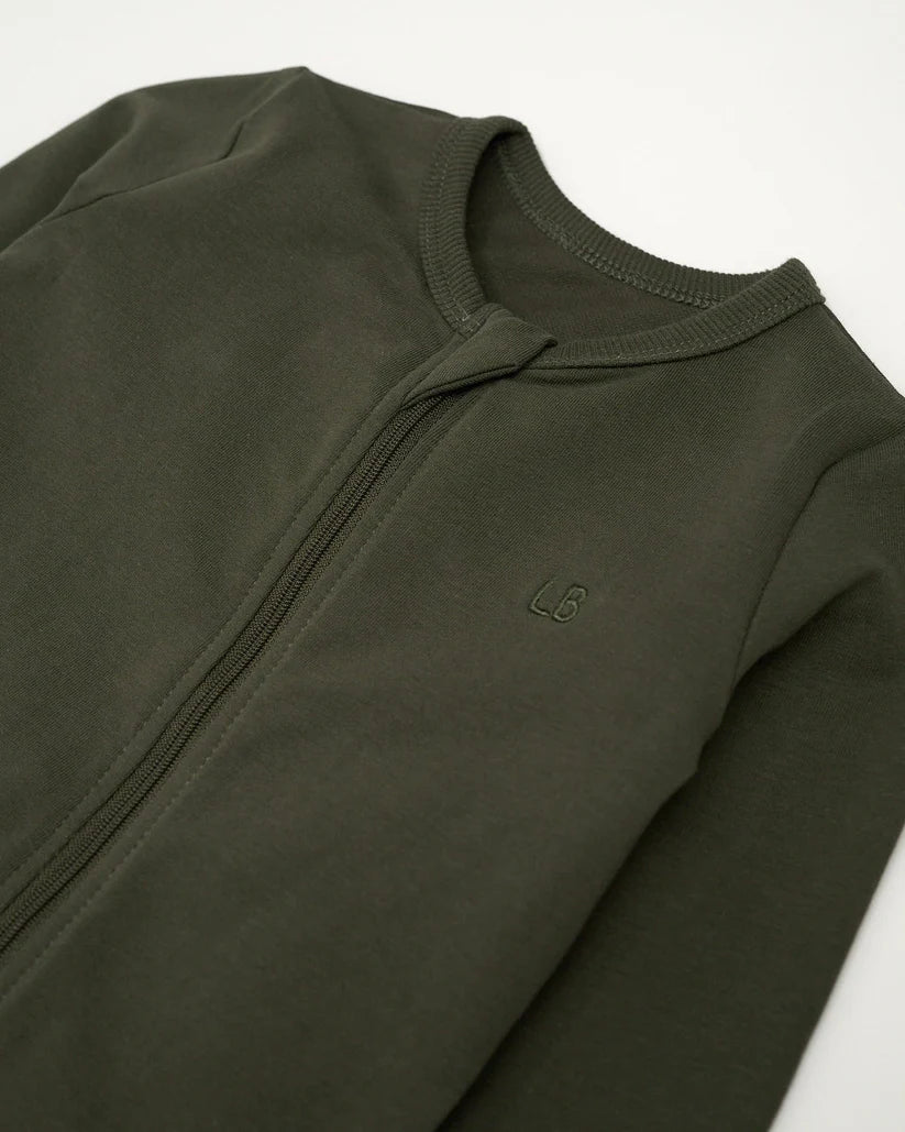 Cozy and practical, the Hunter Romper features our 2-way zip for easy changes, ribbed and rollable cuffs, a protective zipper cover, and our signature embroidered “LB” for a timeless finish.