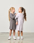 Soft, simple, and made for movement. The brushed ribbed fabric and ribbed trim details give this dress a cozy, elevated feel. Finished with functional front pockets and a modern graphite tone for effortless everyday style.